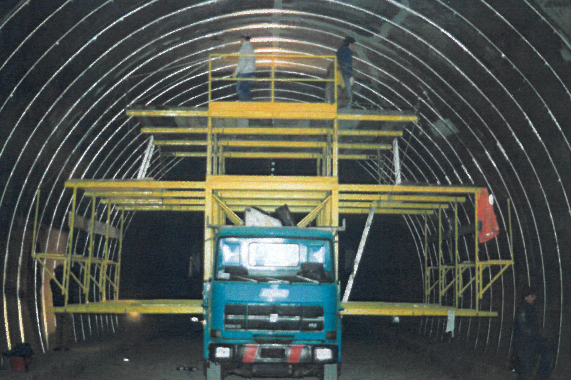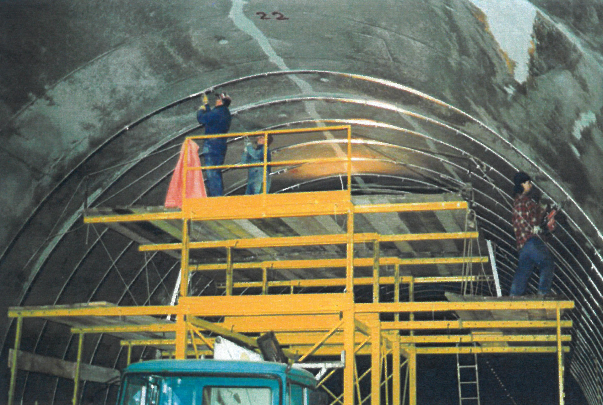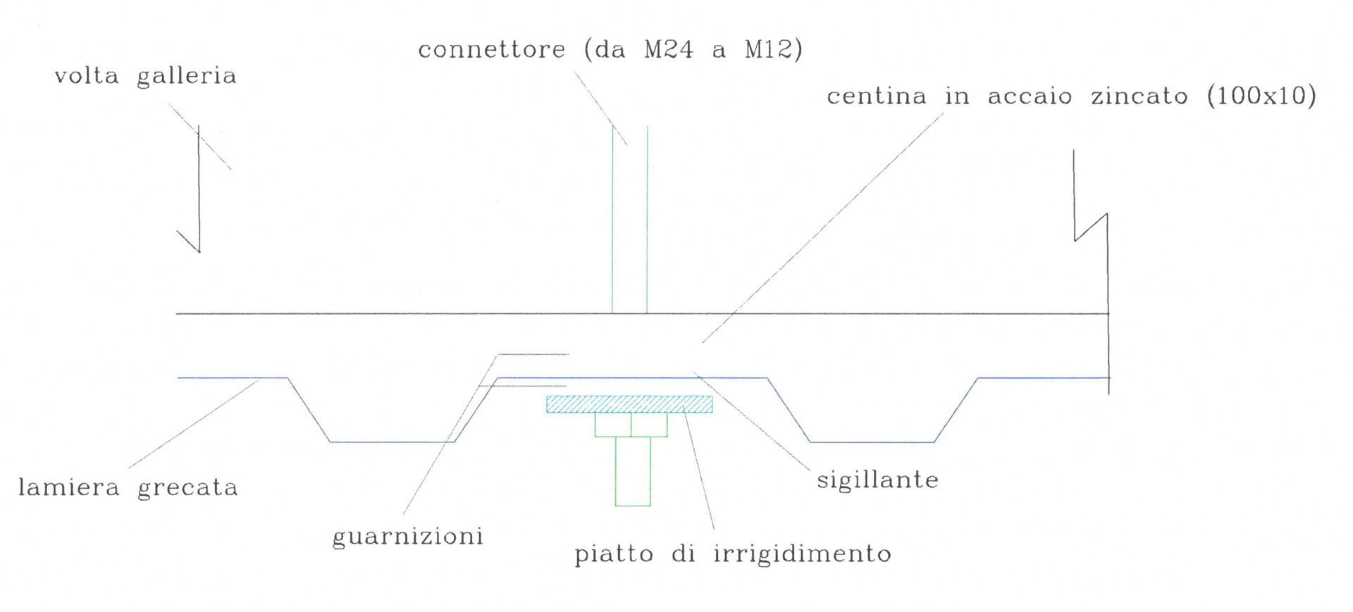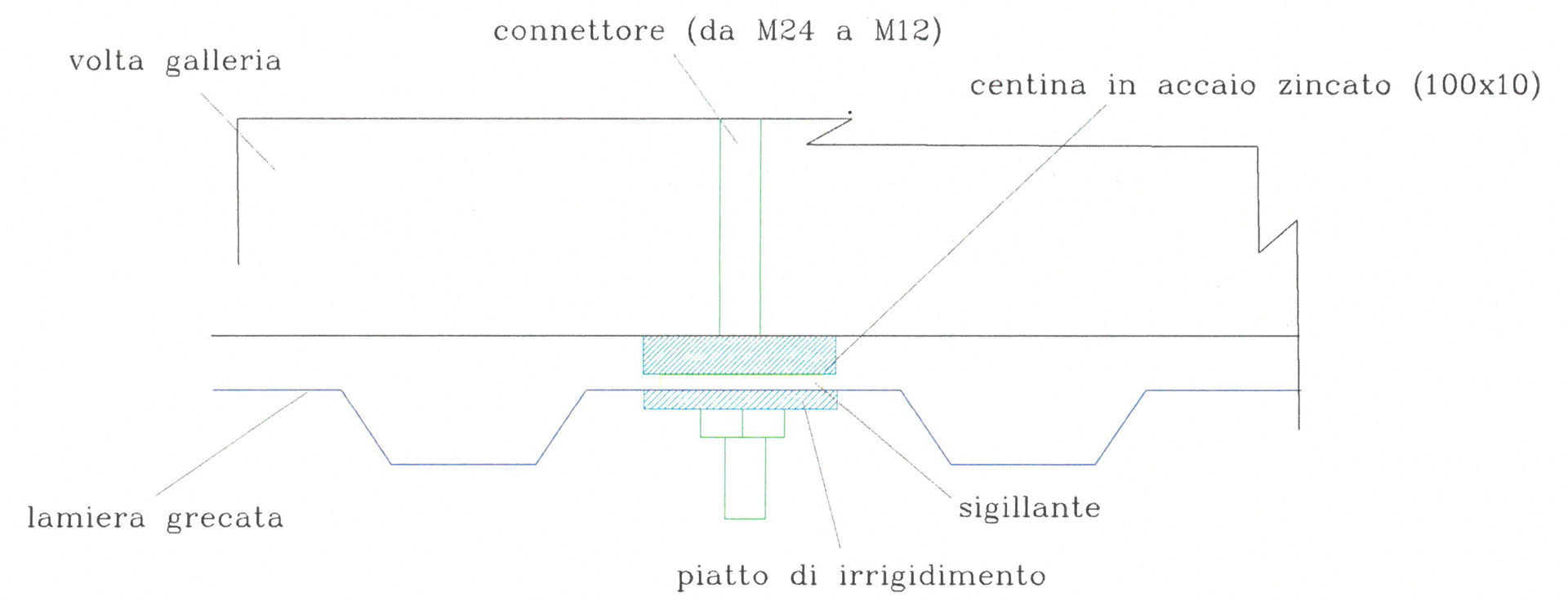 Sostituzione del manto danneggiato con posa di centine di rinforzo connesse al rivestimento esistente e al terreno circostante la volta.